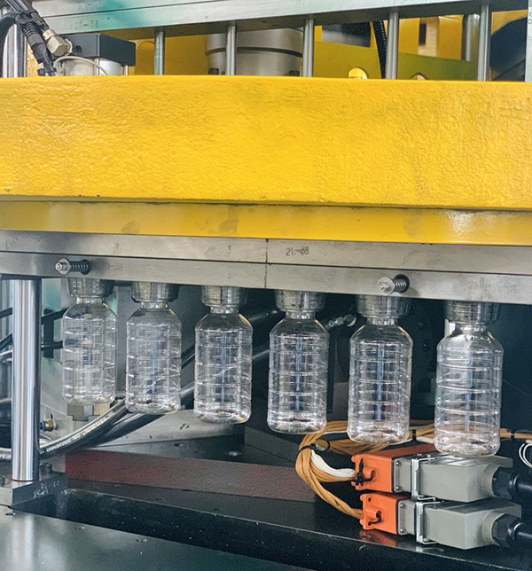 液压锁模、镶芯、拉伸吹塑、底部成型为标准配置;产品脱模:配备标准顶出装置。