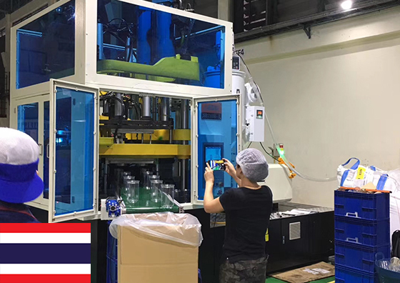 JASU 一步式 ISBM 机器,配有泰国 PET 罐/罐模具,用于食品包装。