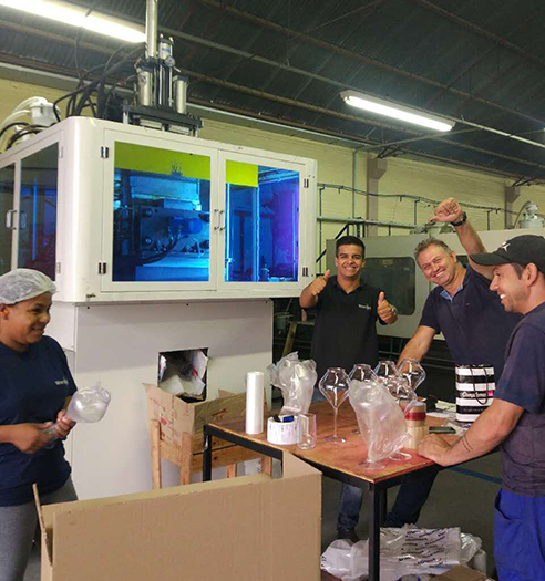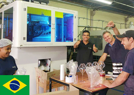 巴西JASU一步法注射吹塑机,搭配PC酒杯模具,用于酒壶、果汁壶、啤酒壶、奶茶壶等。